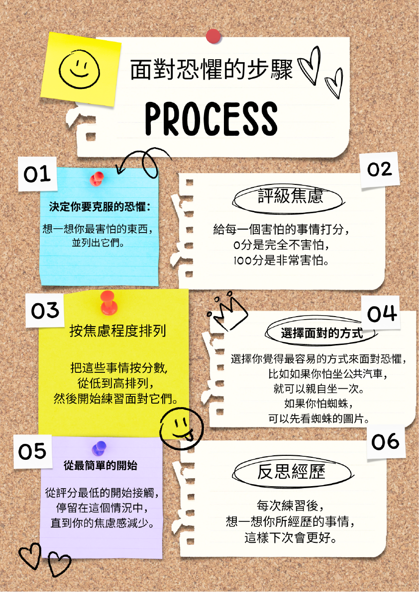 - 書寫面對療法:把讓你焦慮的事情寫下來,這樣可以幫助你處理和減輕恐懼。
